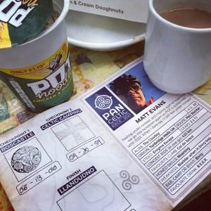 A couple more PanCeltic riders show up for breakfast, so we chat about this and that, tyres and the like, the usual cyclist talk. Not all of them have spent the night in the Travelodge; Oli found a playhouse in a kids’ playground, which he rates highly as a bivi spot. When we bumped into him at Boscastle two days ago he was telling us about how he’d been offered a bed for the night by an elderly couple who’d found him curled up in the porch of their local church. He’s got this gig nailed.
