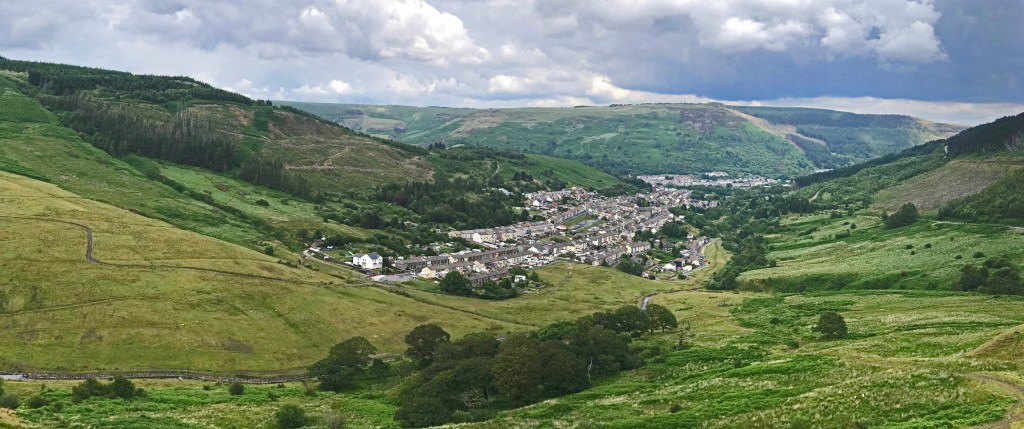 What it holds for me though, on this bright day, is some stunning scenery as we climb out of Pentre towards Afan. I stop to take a squint back at the town, which looks as though it’s been poured into the valley from a jug, sitting neatly delineated between emerald slopes. I remember Dad telling me how, during the war, he would scramble up to the head of the valley at night and watch the glow of fires burning in Port Talbot, as bombs rained down on the steelworks. Generations later, time and economics have done what the Luftwaffe couldn’t do, devastated the place.